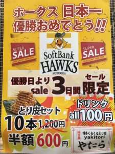 ふだん野球音痴の自分なんですけど、ホークス優勝セールはいつでも大歓迎です♪ (笑)