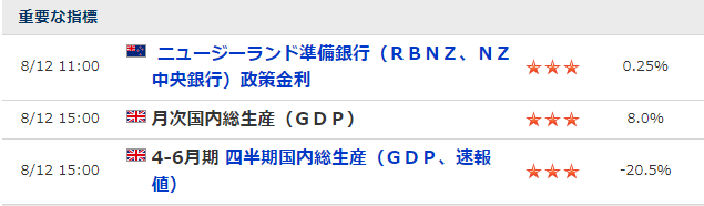 来週の注目経済指標は、12日(水)のポンドとニュージーランド通貨です。